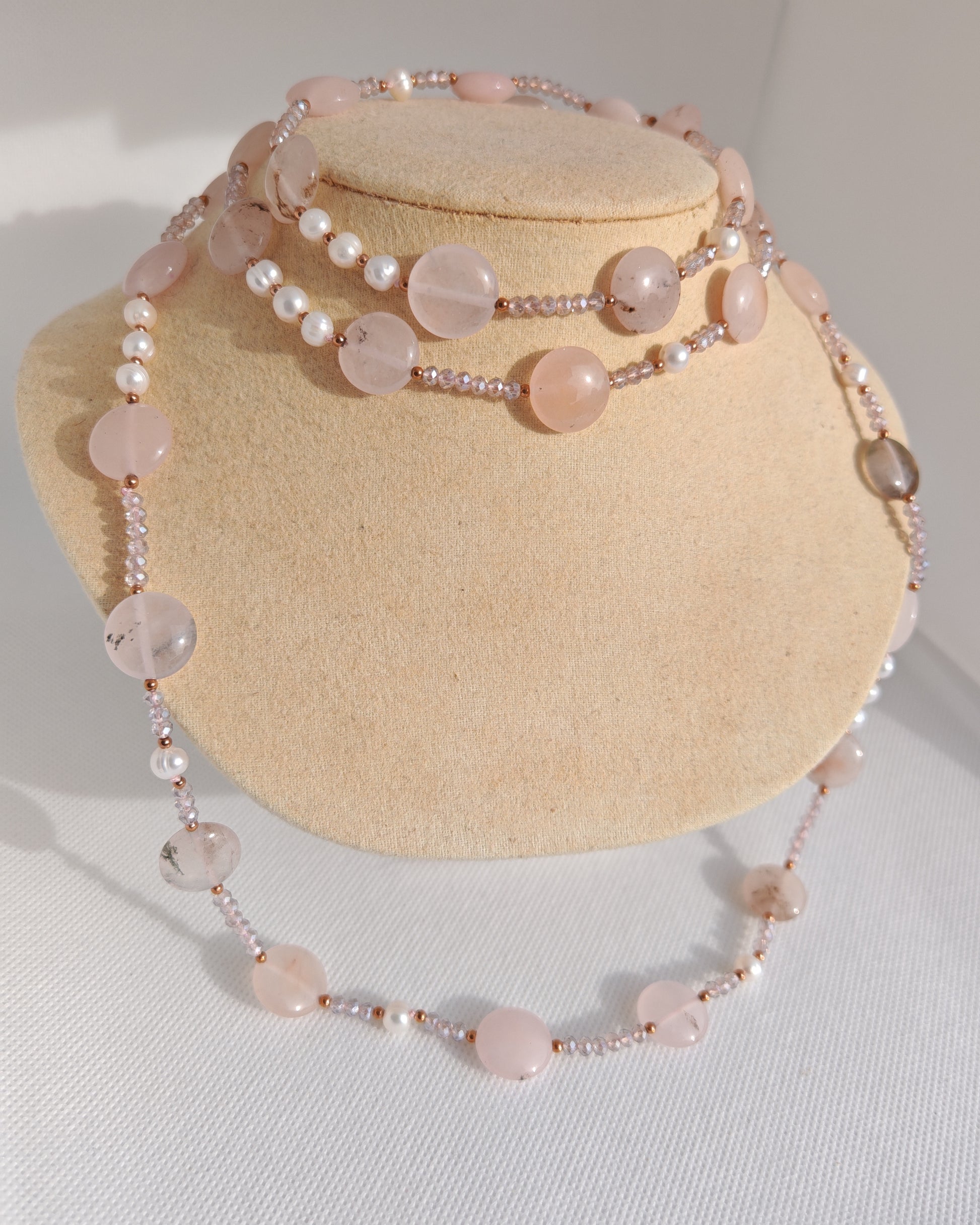 Una collana elegante e versatile, lunga ben 120 cm, che non presenta alcuna chiusura, offrendo la possibilità di indossarla in diversi modi.