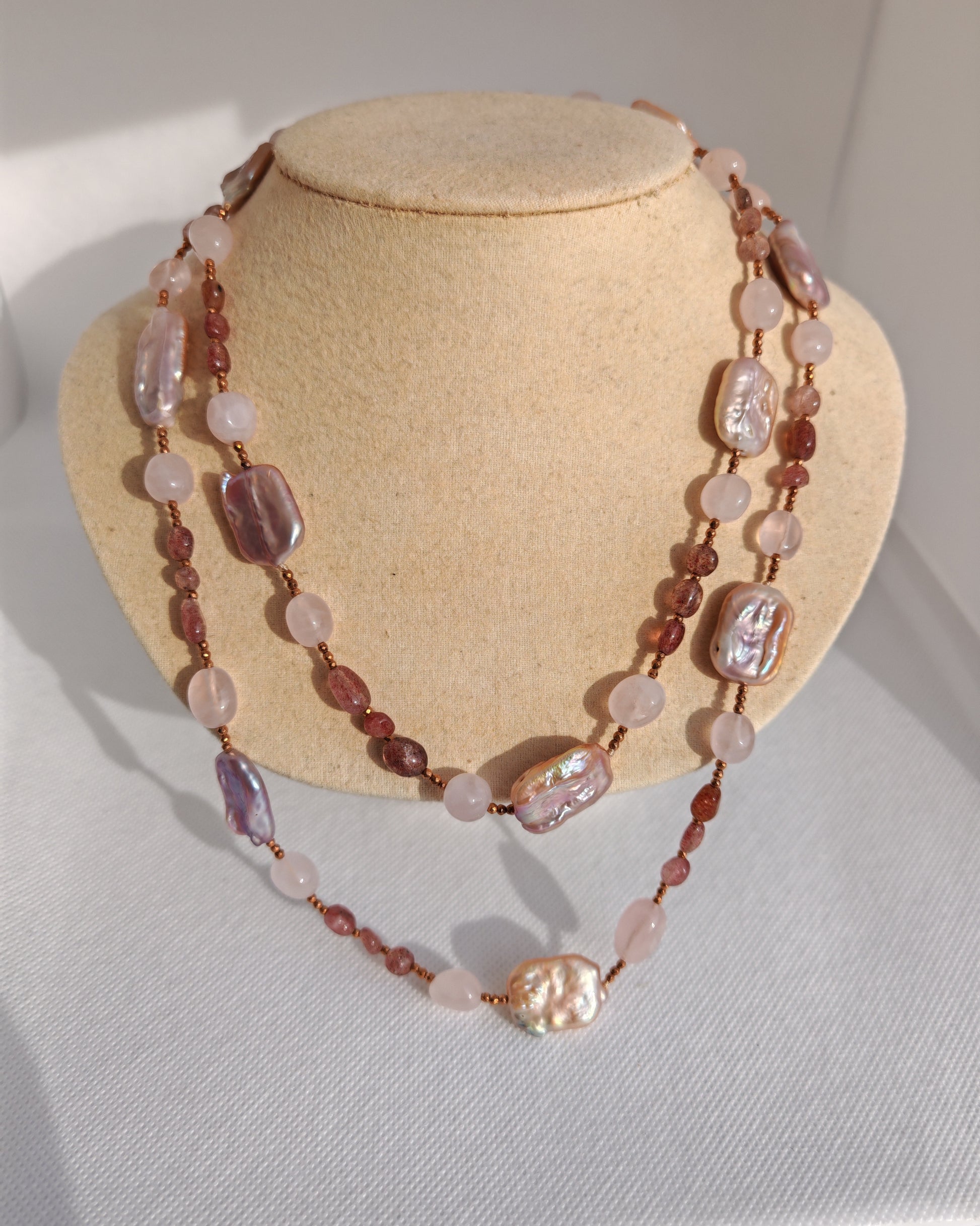 Lavorazione a filo: Questa tecnica artigianale garantisce flessibilità e fluidità, permettendo alla collana di avvolgersi morbidamente intorno al collo in uno o più giri.